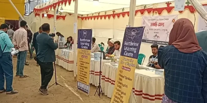 চাঁদপুর আউটার স্টেডিয়ামে তারুণ্য উৎসব ২০২৫ মেলায় জেলা প্রশাসনের আয়োজনে একদিনের জন্য চলছে চাকরীর মেলা।