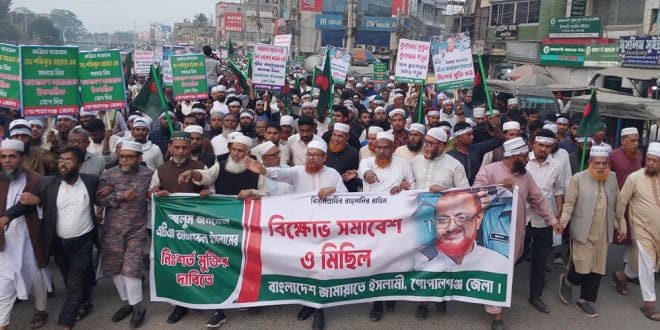 জামায়াতে ইসলামী গোপালগঞ্জ জেলা শাখার উদ্যোগে মঙ্গলবার (১৮ ফেব্রুয়ারি) বিকেলে এই বিক্ষোভ মিছিল করা হয়।