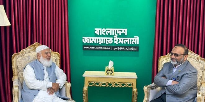 গতকাল ০৬ জানুয়ারি (মঙ্গলবার) সন্ধ্যায় বাংলাদেশ জামায়াতে ইসলামীর সম্মানিত আমীর ডা. শফিকুর রহমানের সঙ্গে তাঁর বসুন্ধরাস্থ কার্যালয়ে ঢাকা বিশ্ববিদ্যালয়ের সম্মানিত উপাচার্য অধ্যাপক ড. নিয়াজ আহমেদ খান সৌজন্য সাক্ষাৎ করেন।