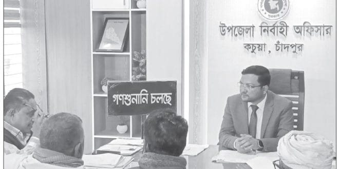 কচুয়া উপজেলা নির্বাহী কর্মকর্তা (ইউএনও) মুহাম্মদ হেলাল চৌধুরীর গণশুনানির মাধ্যমে মিটছে দুর্ভোগ ও ভোগান্তি। সপ্তাহের প্রতি বুধবার তিনি তার নিজ অফিস কক্ষে সকাল ৯টা থেকে দুপুর ২টা পর্যন্ত এই গণশুনানি পরিচালনা করে থাকেন।