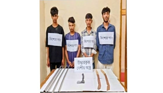 চাঁদপুরে দেশীয় অস্ত্রশস্ত্র সহ ৪ কিশোর অপরাধী আটক