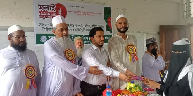 “যাদের আত্মত্যাগের বিনিময়ে পেলাম নতুন বাংলাদেশ, আমরা তোমাদের ভুলবো না” — এই স্লোগানকে সামনে রেখে চাঁদপুর সদর উপজেলার চান্দ্রা বাজার নূরীয়া ফাজিল ডিগ্রী মাদ্রাসায় অনুষ্ঠিত হয়েছে জুলাই পূর্ণজাগরণ অনুষ্ঠানমালা-২০২৫।