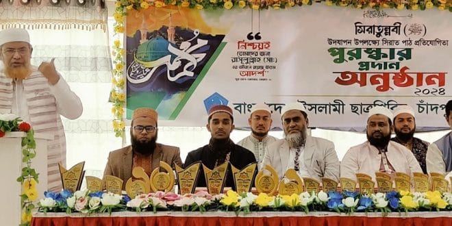 বাংলাদেশ ইসলামি ছাত্রশিবির চাঁদপুর জেলা শাখার উদ্যোগে আয়োজিত সীরাত পাঠ প্রতিযোগিতা’২৪ এর পুরস্কার বিতরণ অনুষ্ঠান সম্পন্ন হয়েছে।
