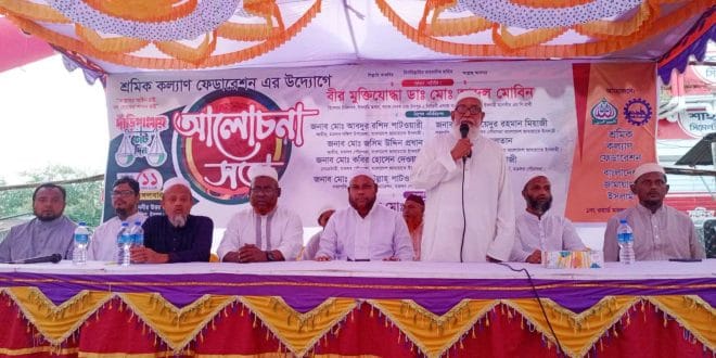 মঙ্গলবার (১১ নভেম্বর ২০২৫) বিকেলে মতলব দক্ষিণ উপজেলার নদীর উত্তর পাড় ফেরীঘাট সংলগ্ন এলাকায় শ্রমিক কল্যাণ ফেডারেশনের আয়োজনে আলোচনা সভায় প্রধান অতিথির বক্তব্যে তিনি এ কথাগুলো বলেন। মতলব পৌরসভার ১নং ওয়ার্ড শ্রমিক কল্যাণ ফেডারেশনের সভাপতি মো. মোমিন আলী বেপারীর সভাপতিত্বে ও ১নং ওয়ার্ড বাংলাদেশ জামায়াতে ইসলামীর সেক্রেটারী টিপু সুলতানের সঞ্চালনায় বিশেষ অতিথির বক্তব্য রাখেন বাংলাদেশ জামায়াতে ইসলামীর মতলব দক্ষিণ উপজেলা আমির মো. আবদুর রশিদ পাটওয়ারী, মতলব পৌরসভার আমির মো. জসিম উদ্দিন প্রধান, সেক্রেটারী মো. কবির হোসেন দেওয়ান। বক্তব্য রাখেন শ্রমিক কল্যাণ ফেডারেশনের সভাপতি মো. শরীফ উল্লাহ পাটওয়ারী, বাংলাদেশ জামায়াতে ইসলামী মতলব পৌরসভার ১নং ওয়ার্ড সভাপতি মো. সায়েদুর রহমান মিয়াজী, চরবাইশপুর ইউনিটের ১নং ওয়ার্ড সেক্রেটারী মো. হাছান ফরাজী প্রমুখ।