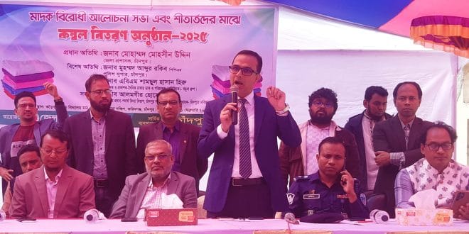 ফরিদগঞ্জে মাদক বিরোধী আলোচনা সভা এবং শীতার্তদের মাঝে কম্বল বিতরণ করা হয়েছে। ১ ফেব্রুয়ারি শনিবার সকালে উপজেলার পাইকপাড়া দক্ষিণ ইউনিয়নের কড়ৈতলী উচ্চ বিদ্যালয় মাঠে এ অনুষ্ঠানের আয়োজন করে চাঁদপুর জেলা প্রশাসন। অনুষ্ঠানের সার্বিক ব্যবস্থাপনার দায়িত্ব পালন করে চাঁদপুর জেলার ঢাকা বিশ্ববিদ্যালয়ের সাবেক শিক্ষার্থীদের ফোরাম ‘চাঁদপুরে ঢাবিয়ান’। অনুষ্ঠানে প্রধান অতিথি হিসেবে উপস্থিত ছিলেন জেলা প্রশাসক মোহাম্মদ মোহসীন উদ্দিন।