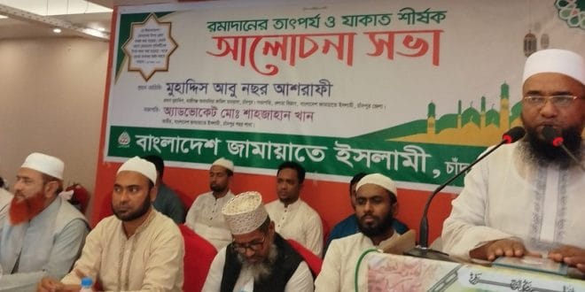 বাংলাদেশ জামায়াতে ইসলামী চাঁদপুর শহর শাখার উদ্যোগে রামাদানের তাৎপর্য ও যাকাত শীর্ষক আলোচনা সভা অনুষ্ঠিত হয়েছে।