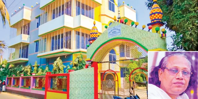 মানিকগঞ্জের সাটুরিয়া উপজেলার চরতিল্লী গ্রামে বাউল শিল্পী আবুল সরকারের আলিশান বাড়ি, ইনসেটে বিতর্কিত শিল্পী।