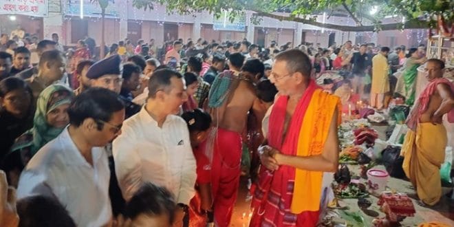 সোমবার দুপুর থেকেই ভক্তদের উপস্থিতি ছিলো লক্ষণীয়। সন্ধ্যায় চাঁদপুরের জেলা প্রশাসক মোহাম্মদ মোহসীন উদ্দিন দীপাবলি উৎসব পরিদর্শনে আসেন। তিনি শান্তিপূর্ণ পরিবেশ দেখে সন্তোষ প্রকাশ করেন। উপজেলা পূজা উদযাপন পরিষদের সভাপতি নিখিল চন্দ্র মজুমদার জানান, প্রশাসন সহ সকল রাজনৈতিক দলের নেতৃবৃন্দের সহযোগিতা পাচ্ছি। আমাদের মাঝে কোনো ভয়ভীতি নেই। শান্তিপূর্ণ পরিবেশে উৎসব সম্পন্ন করার সকল প্রস্তুতি নেয়া হয়েছে।