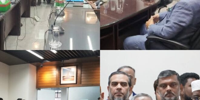 আজ ৭ জানুয়ারি (বুধবার) বিকাল ৩টায় বাংলাদেশ জামায়াতে ইসলামীর নায়েবে আমীর ও সাবেক এমপি ডা. সৈয়দ আব্দুল্লাহ মো. তাহেরের নেতৃত্বে ছয় সদস্যের একটি প্রতিনিধি দল নির্বাচন কমিশনের সঙ্গে সাক্ষাৎ করেছেন। প্রতিনিধি দলে ছিলেন সংগঠনের সেক্রেটারি জেনারেল, সাবেক এমপি মিয়া গোলাম পরওয়ার, সহকারী সেক্রেটারি জেনারেল ড. হামিদুর রহমান আযাদ (সাবেক এমপি) এবং এডভোকেট এহসানুল মাহবুব জুবায়ের, কেন্দ্রীয় নির্বাহী পরিষদ সদস্য জনাব মোবারক হোসাইন ও সুপ্রিম কোর্টের সিনিয়র আইনজীবী মোহাম্মদ শিশির মনির।