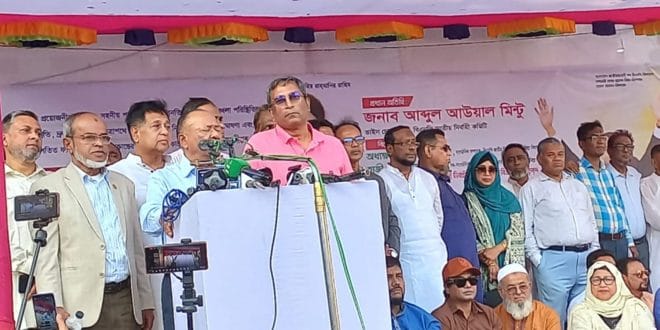 বিএনপির জাতীয় নির্বাহী কমিটির ভাইস চেয়ারম্যান আব্দুল আউয়াল মিন্টু বলেছেন, আমরা এই সরকার কাছে দাবি জানাই, একটা অবাধ নিরপেক্ষ নির্বাচন এর মাধ্যমে জনগন এর সরকারের কাছে ক্ষমতা হস্তান্তর করার জন্য। আমরা গত ১৭ বছর গ্রাম থেকে শুরু করে মহানগর পর্যন্ত আন্দোলন করেছি, একটি গণতান্ত্রিক সরকার প্রতিষ্ঠা করার জন্য। আমরা মানুষের মৌলিক অধিকার, মানবাধিকার, সাংবিধানিক অধিকার, ভোটের অধিকার প্রতিষ্ঠা করতে চাই।