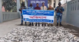 হাইমচরে কোস্টগার্ডের অভিযানে ৫০০ কেজি জাটকা জব্দ