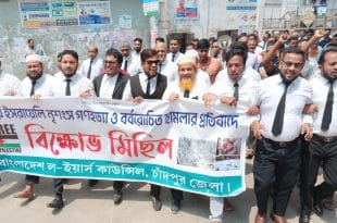 বিস্তারিতঃ-ইসরায়েলি গণহত্যার প্রতিবাদে চাঁদপুরে আইনজীবীদের বিক্ষোভ