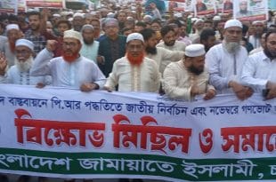 বিস্তারিতঃ-৫ দফা দাবিতে চাঁদপুর জেলা জামায়াতের বিক্ষোভ মিছিল