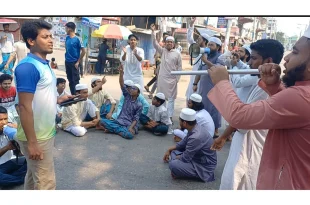 চাঁদপুরে আওয়ামী লীগ নিষিদ্ধের দাবিতে জনতার সড়ক অবরোধ